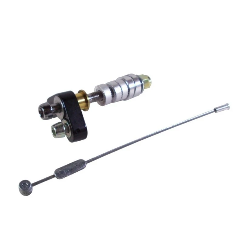 Le dispositif déplace la butée de la gaine de frein et permet le montage de l’attache au cadre du vélo ;