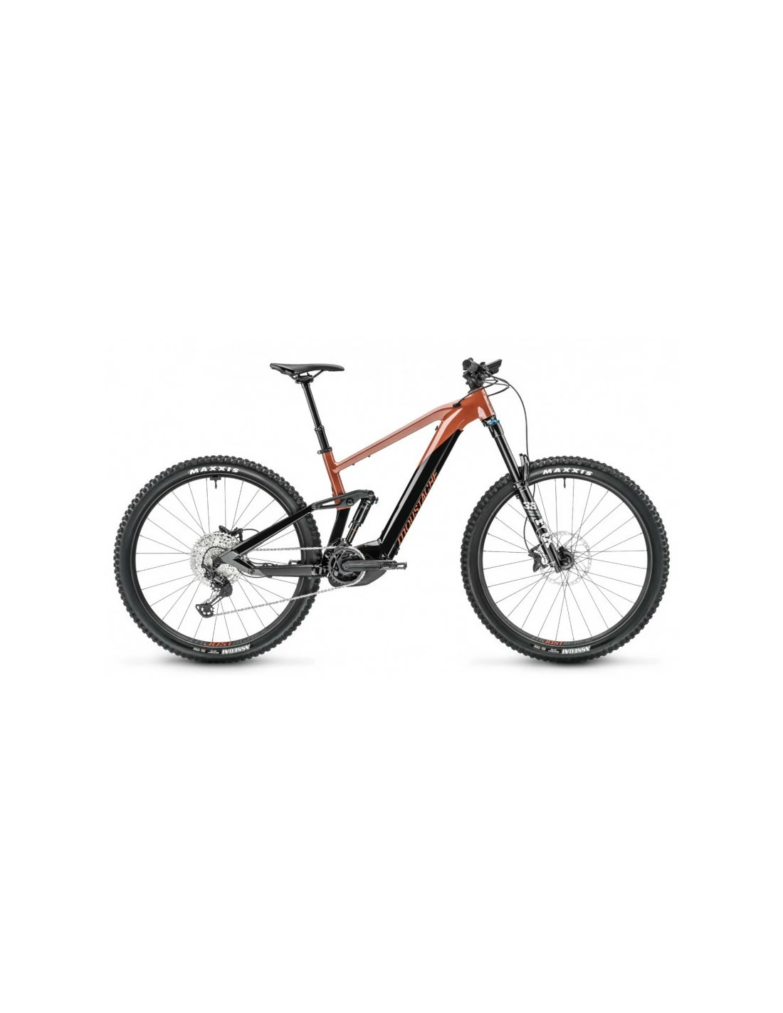 La fourche suspendue Fox 38 Performance couplée à l’amortisseur arrière Moustache Magic Grip Control, confèrent 170 mm de débattement pour gommer les aspérités du terrain avec une efficacité et une précision bluffante.