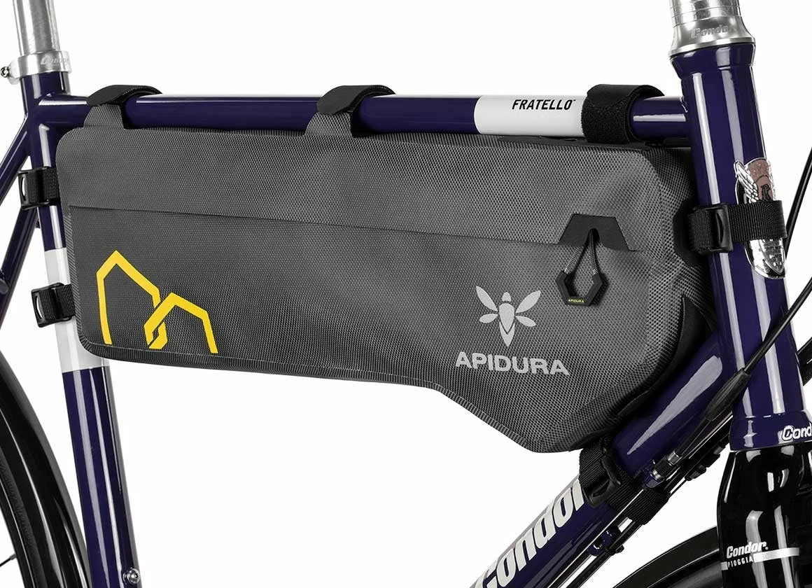 La sacoche se fixe solidement aux tubes supérieurs, de selle et diagonal via 7 fixations velcro, ce qui confère une très forte stabilité de la sacoche et lui donne un aspect compact, dans le prolongement des lignes et fait partie intégrante de votre monture. Le pilotage n’en est donc pas altéré, rendant vos voyages de plusieurs jours plus confortables. Elle est tout aussi pratique lorqu’elle est utilisée pour stocker l’essentiel lors de vos trajets quotidien.