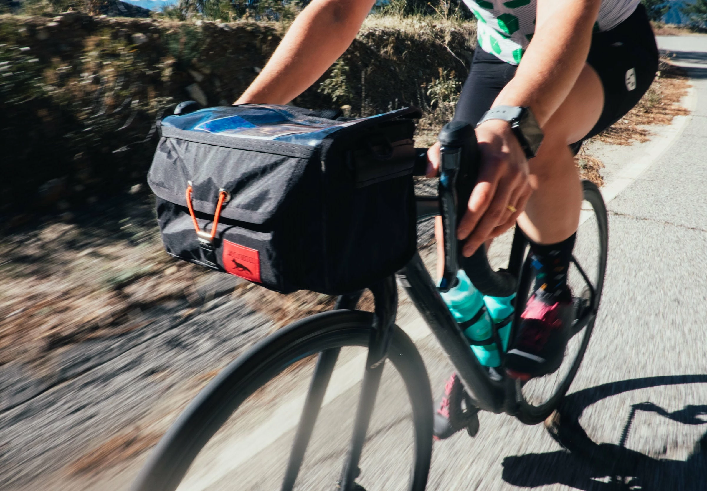 Un étui à cartes transparent et une poche extérieure ajoutent de l’utilité à cet élégante sacoche. Elle sera idéale pour les balades sur route, les sorties gravel et les randonnées légères.