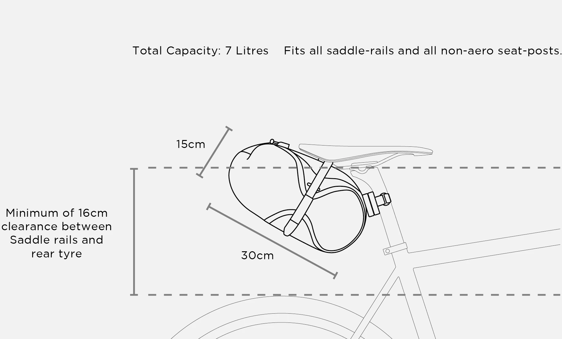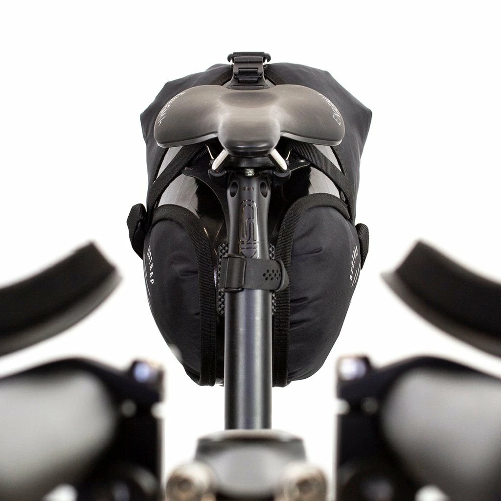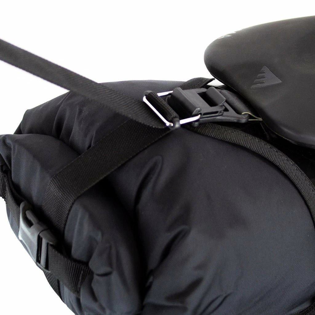 Des sangles en nylon, des sangles en Hypalon et des blocs de mousse fixent l’étui autour de la tige de selle, gardant le sac en place en toute sécurité et sans balancement.