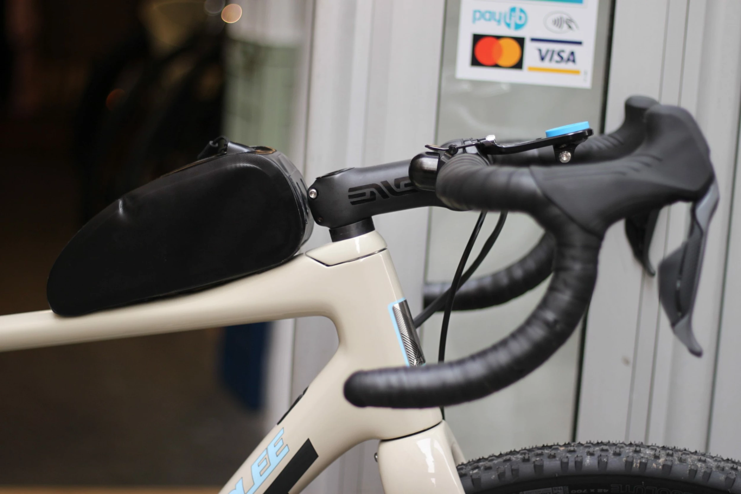 La sacoche Top Tube Tycoon se fixe sur le vélo, soit grâce aux 3 sangles velcros, soit en direct mount si le cadre est doté d’inserts sur le tube supérieur.